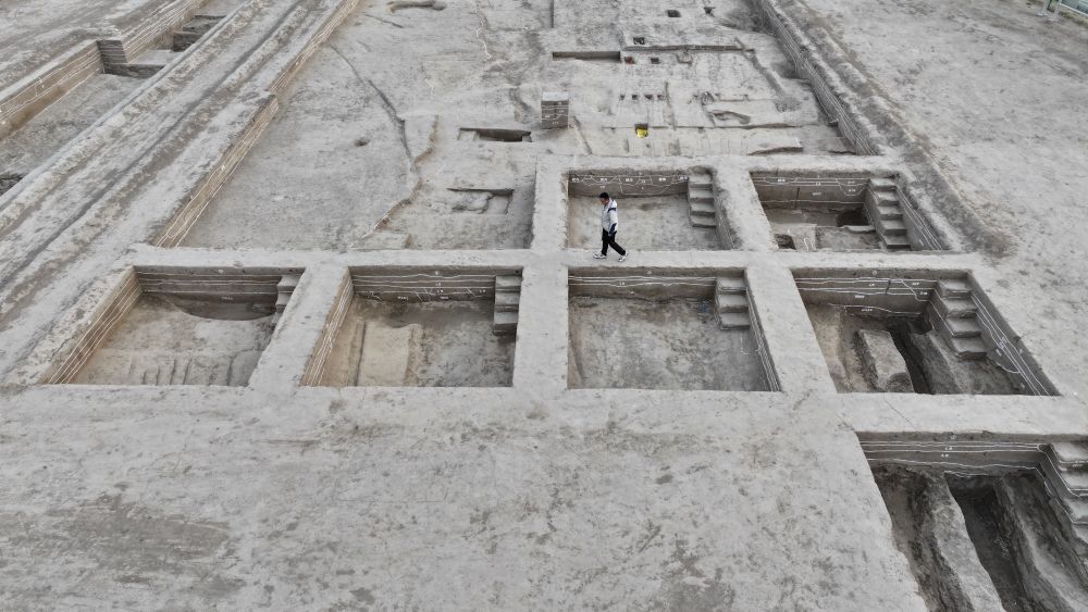 这是雄安新区南阳遗址考古发掘现场(3月26日摄,无人机照片)。新华社记者 牟宇 摄