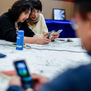 吉林省社区老年大学学员讨论如何进行视频剪辑(2023年10月30日摄)。新华社记者 许畅 摄