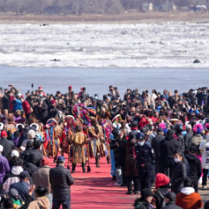 “开江了!开江了!开江了!”万余名市民相聚在黑龙江省佳木斯市的外滩广场和栈道上,身着萨满服饰的赫哲族人组成的祈福队伍,面朝松花江佳木斯段江面,喊出了对风调雨顺的期待和对美好生活的祝愿——这个春天,佳木斯举行了盛大的“喊江节”。