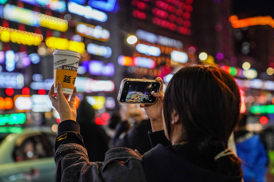 夜幕降临,延吉“网红弹幕墙”前,游客将“延吉”标识咖啡高高举起,手机相机频频连闪,与霓虹灯交相辉映。最近,这里又有了灯光秀表演,景色更加绚烂多彩。
