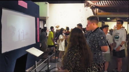 外国游客在成都博物馆欣赏皮影戏表演。李雨心 摄