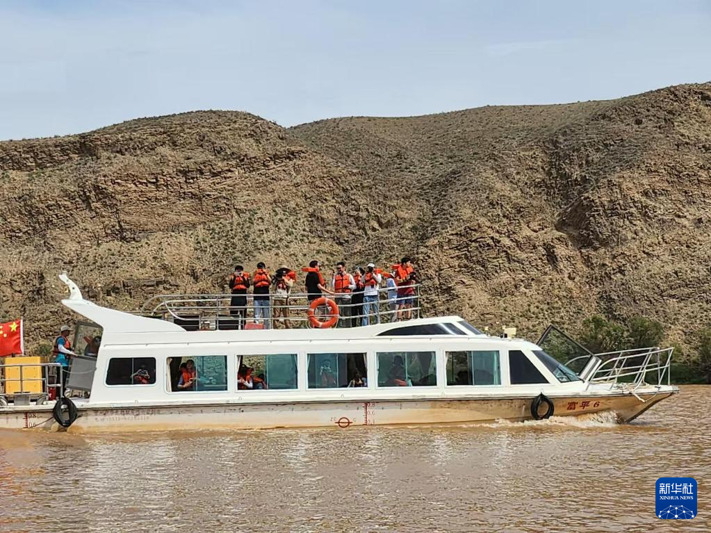 7月28日,采访团记者乘船行驶在青铜峡黄河大峡谷中。新华社记者 刘明洋 摄