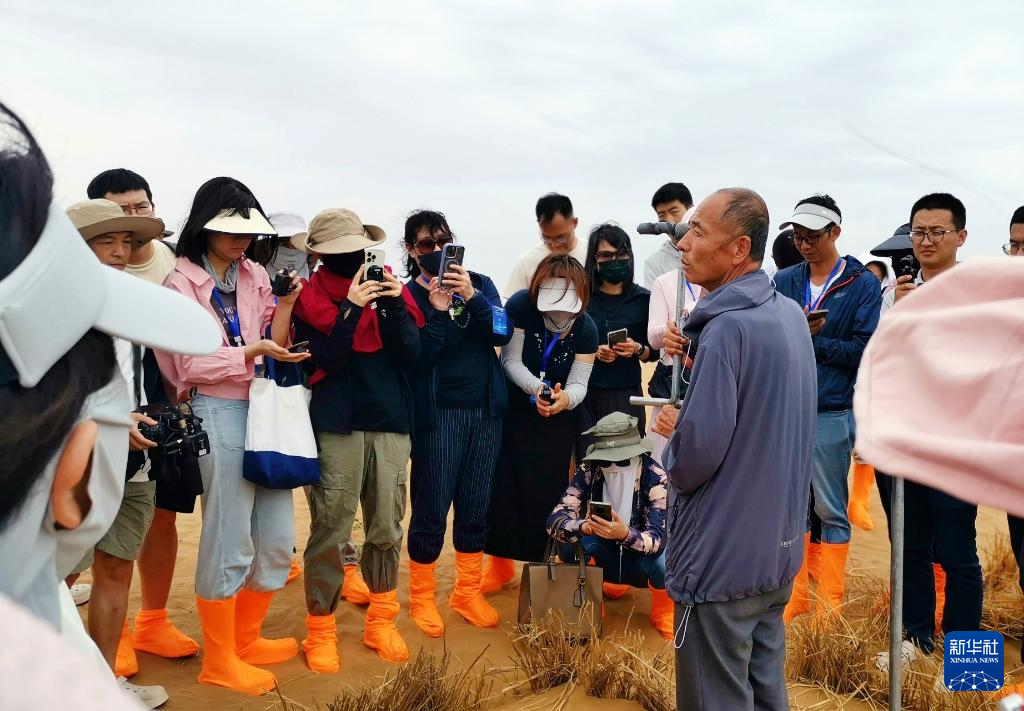 在沙坡头国家级自然保护区,固沙“利器”——麦草方格引起采访团关注。这种就地取材的“土法子”成功击退了步步逼近的沙海,实现了“沙退绿进”。