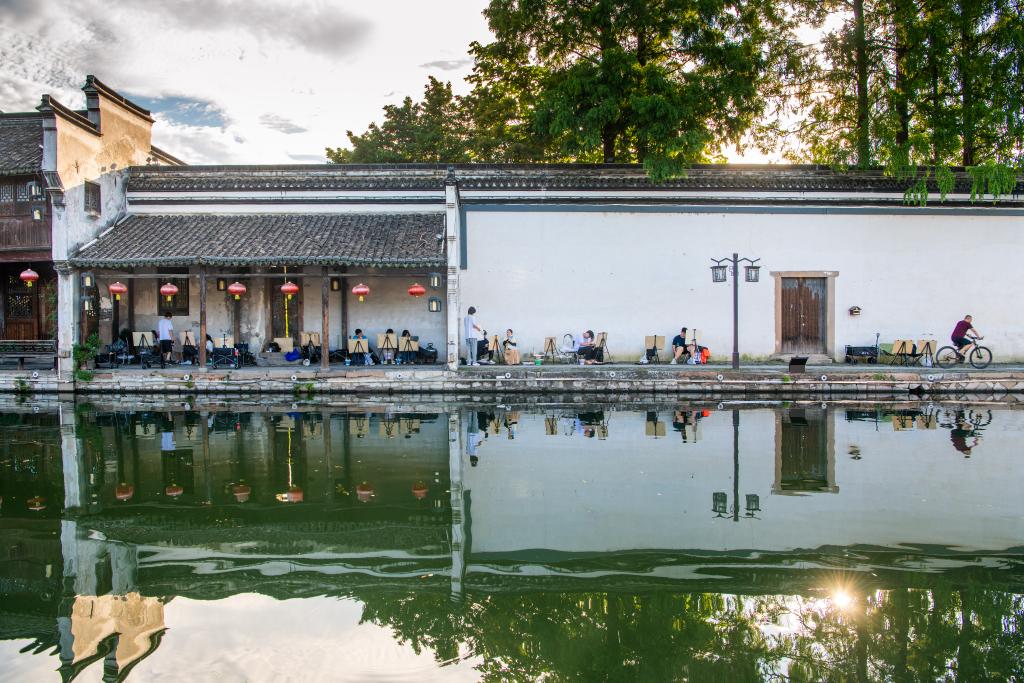 清晨,南浔古镇景区写生的学生记录运河古镇美景。(沈勇强 摄)