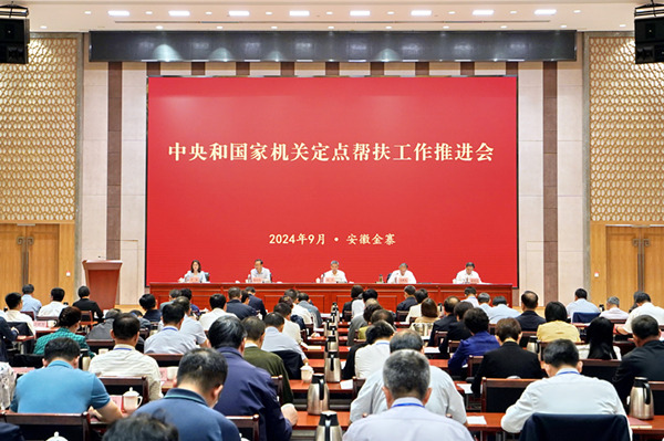 会议指出,中央和国家机关各部门坚持以习近平新时代中国特色社会主义思想为指导,深入学习贯彻党的二十大和二十届二中、三中全会精神,始终把定点帮扶工作作为重大政治任务抓紧抓实,助推脱贫攻坚成果进一步巩固拓展、乡村振兴取得显著成效。会议强调,要进一步提高政治站位,深刻认识定点帮扶工作面临的新形势新任务,自觉把思想和行动统一到党的二十届三中全会精神和习近平总书记重要指示精神上来,在学习宣传贯彻三中全会精神上当好排头兵,在进一步全面深化改革、推进中国式现代化上走在前、作示范。要进一步强化底线思维,运行好防返贫动态监测和帮扶机制,建立分层分类帮扶制度,确保不发生规模性返贫。要进一步发挥职能优势,加大帮扶力度,整合帮扶资源力量,努力形成更多具有自身特色的改革成果,助力增强发展动能。要进一步着眼常态长效,积极探索完善帮扶机制,学习运用好“千万工程”经验,推动建立完善富民产业发展促进机制、农村基本公共服务保障机制等,持续推动定点帮扶工作走深走实。