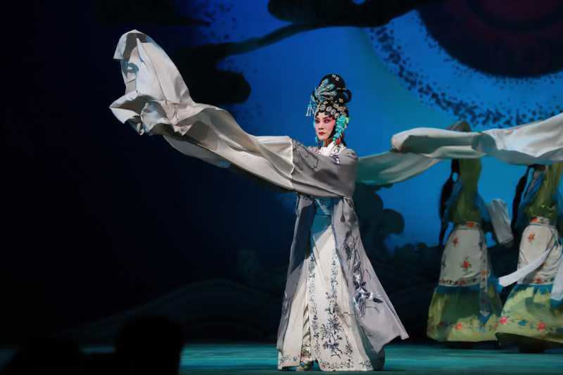 王洪玲作为当代河北梆子的领军人物,守正创新赓续艺脉,在沿循该剧表演风格和艺术特色的前提下,充分调动运用河北梆子的艺术风格,为这部戏赋能添彩,彰显出全新的艺术活力和风采。《美狄亚》的剧情虽然讲述的是古希腊的故事,但是传统的服饰装扮、四功五法的灵活化用、行当鲜明的人物设置,让观众非但没有生疏隔阂之感,反而倍觉亲切熟悉。河北梆子历来擅长演绎慷慨悲壮的故事,《美狄亚》这种虐心的、让人能痛到骨子里的戏,与河北梆子的天生属性有种莫名的契合。王洪玲塑造的中年美狄亚极具艺术感染力,以华彩多变的唱腔、火候十足的表演,出色塑造了“美狄亚”的艺术形象,令人为之倾倒,赞叹不已、拍案叫绝。众所周知,王洪玲的嗓音天赋极佳,行腔华丽多彩,音色甜美圆润,音域宽广隽永,极富穿透力和感染力,这一优势在《美狄亚》中得到了全情展现。王洪玲在演唱中将人物的真挚情感准确细腻的传递给每位观众,人物的喜怒悲怨,把控驾驭的恰到好处。既源自内心的真情实感,又是经过艺术加工的高级演绎,直击每一位观众的心扉。这种艺术的震撼力,非是语言所能表达。只有现场观众才有感悟到这种艺术魅力,这也正是舞台艺术的魅力所在。“美狄亚”的情感变化丰富跌宕,起伏落差巨大,王洪玲匠心化用戏曲艺术的表演手段,将人物内心无以言表的悲怆、亲母弑子的惨烈和对时下境遇的绝望,刻画诠释的入木三分,将河北梆子剧种的艺术特色表现得淋漓尽致、张力十足。王洪玲依据人物内心情感的变化,在极短的时间和规定的情景中,娴熟转换、瞬间把握,水袖、圆场的多姿变幻和富有意韵的眼神、富于情感的唱念,直接传达出所饰人物的心理感受和情感变换,令现场观众感同身受痛彻心扉。中华戏曲艺术中所蕴含的文化力量和艺术魅力再次征服了现场的每一位观众。在当晚的演出中,观众深切的感受到了北京市河北梆子剧团在人才队伍培养上取得的可喜成绩。魏爽饰演的青年美狄亚、董志伟饰演的青年伊阿宋和王思佳、康佳乐等8位演员饰演的歌队人员,基功扎实、善做会唱,将人物塑造的性格鲜明、张力十足,体现出良好的专业能力,已成长为河北梆子的新生力量。