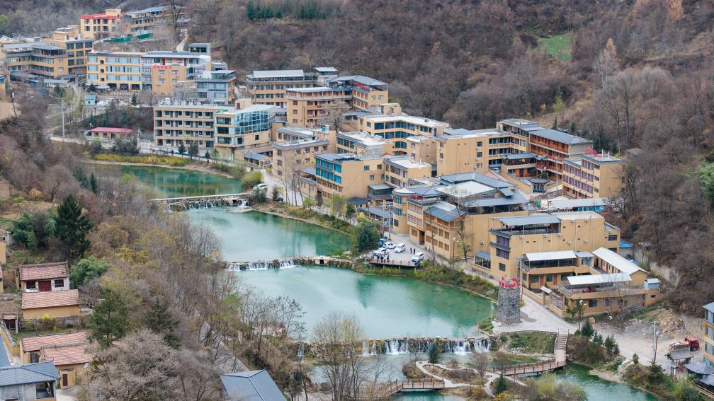这是11月18日在甘肃省陇南市宕昌县立界村拍摄的民宿和农家乐集群(无人机照片)。新华社记者 郎兵兵 摄