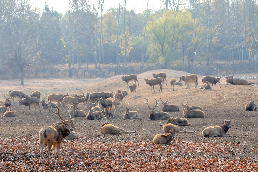 图为在麋鹿国家保护研究中心拍摄的麋鹿。(北京市园林绿化局供图)