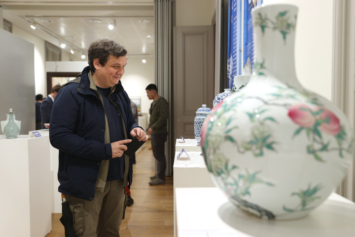 2024年2月22日,人们在比利时布鲁塞尔中国文化中心参观“丝路瓷行”——中国景德镇陶瓷文化特展。新华社记者 赵丁喆 摄