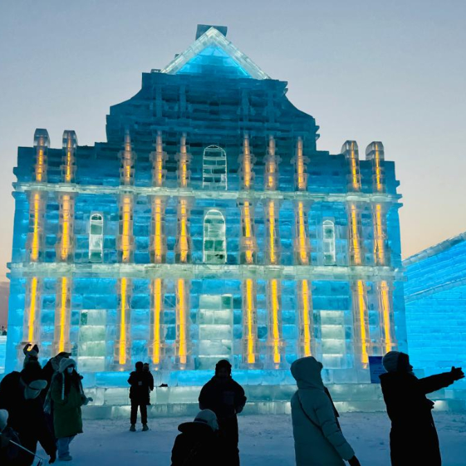 “我一眼就看到了,雕刻得十分逼真!”赖女士说,自己很久之前就知道哈尔滨的冰雪文化特别有名,这次特意跟着旅行团亲眼见证。能在冰雪大世界看到家乡的建筑,让她感到惊喜而亲切。