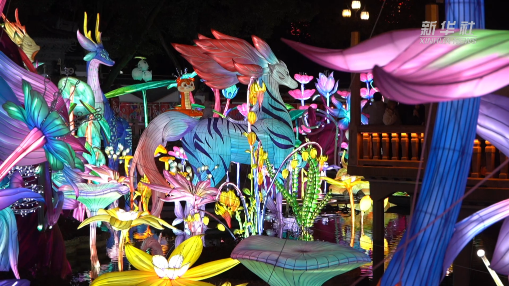 2025年豫园灯会延续2024年“山海奇豫记”的主题,既有生肖蛇的大型灯组,也有各种以《山海经》中描述的灵兽猛禽、奇花异草为灵感制作的花灯,以璀璨灯海向世界展现中国优秀传统文化的魅力。