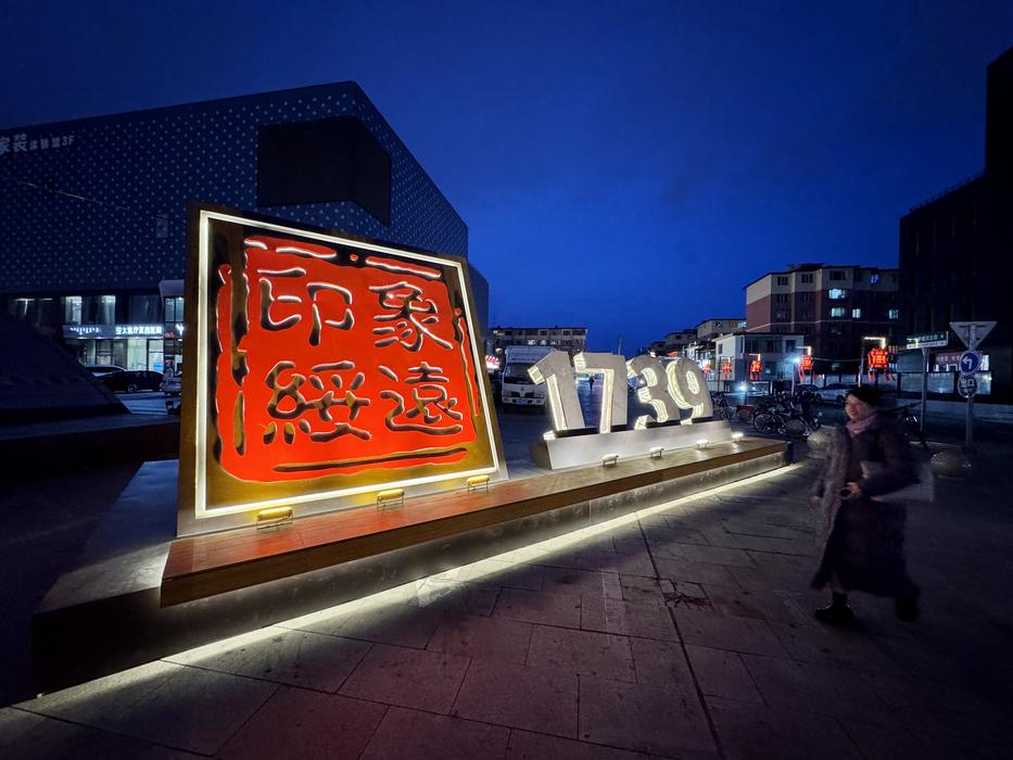 这是呼和浩特市新城区东护城河北街入口的一处雕塑(1月7日摄)。新华社记者王靖 摄