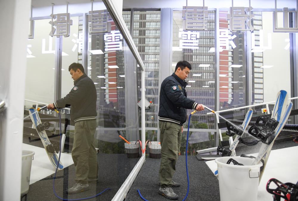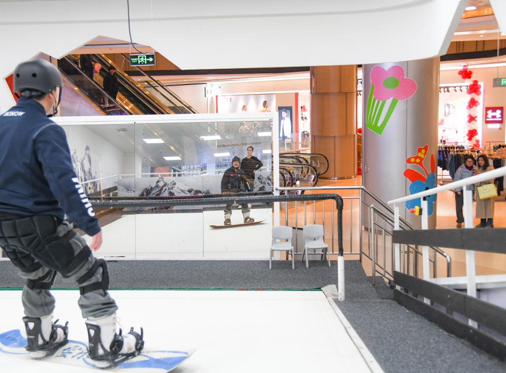 新华社成都1月22日电(记者王曦)临近春节,地处成都高新区的凯德天府商场人头攒动。在商场南侧的写字楼内,从事金融行业的宋杨结束上午的工作,趁着午休时间,步行5分钟来到商场4楼一家名为“雪乐山”的滑雪体验店“开练”。