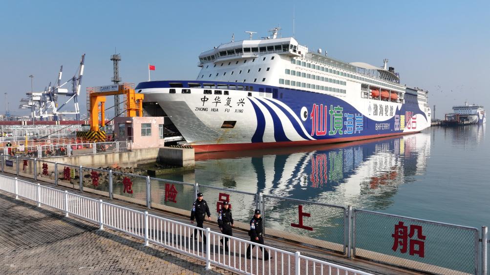 新华社济南1月22日电(记者王阳、王欢、郭绪雷)入夜的海港静谧安详,岸边万家灯火辉煌,国产大型客滚船“中华复兴”轮在大连湾客运站整装待发。200余辆私家车、大货车排队上船,即将与数百名旅客一同踏上大连到烟台的旅程。