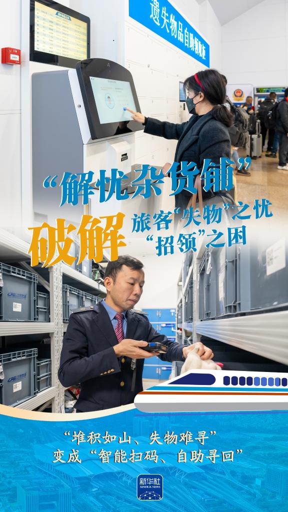 广州南站2024年客流量超过1.7亿人次,是中国最繁忙的高铁站之一,也是遗失物品集中发生的地方。在脚步匆匆的出发或到达中,能从“堆积如山、失物难寻”到“智能扫码、自助寻回”,通过科技赋能指尖操作让旅客更轻松、便捷地找回失物,这个“解忧杂货铺”背后,折射出中国铁路智能服务的提质升级。(海报:刘雅萱)