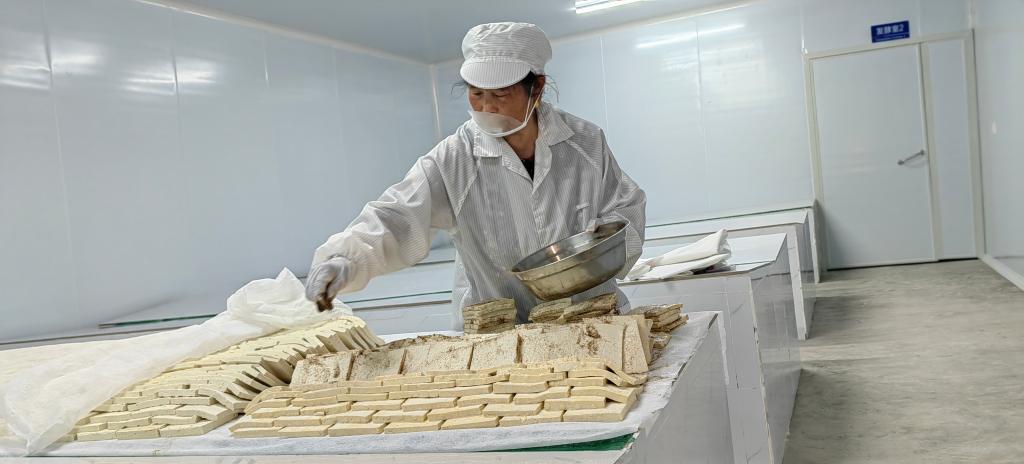 王兴龙的臭豆腐加工厂的工人正在做豆腐。(2024年12月30日摄)(兴义市融媒体中心供图)