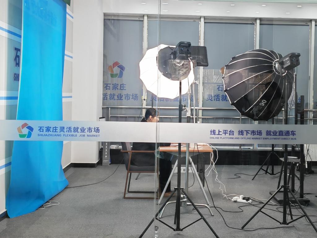 石家庄灵活就业市场的工作人员正在进行直播带岗服务。新华社记者田策 摄