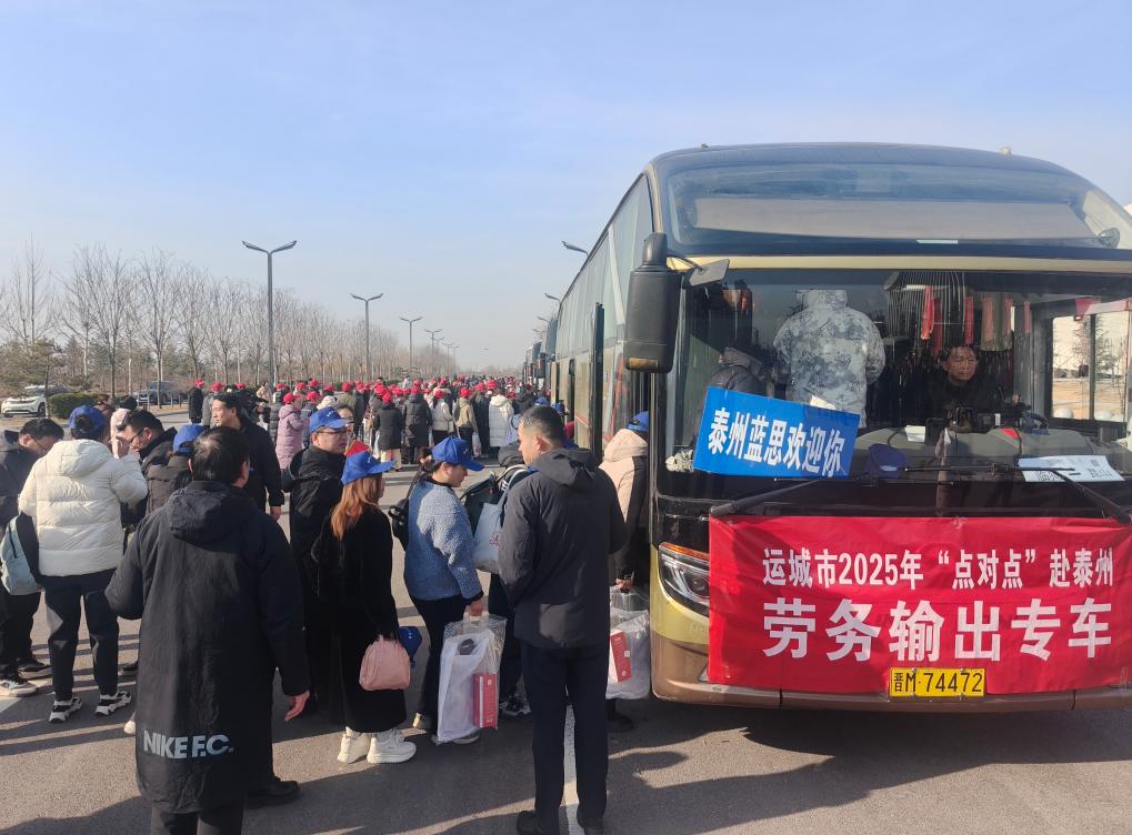 山西运城“点对点”劳务输出专车发车现场。新华社记者王皓 摄