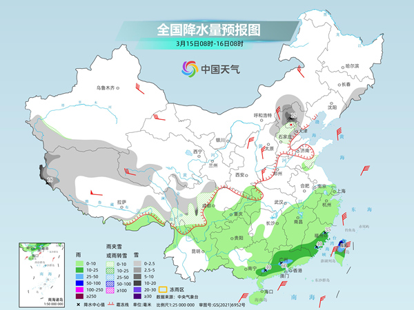 中央气象台预计,今天,新疆南疆盆地、西藏西北部和东南部、青海西南部、川西高原、内蒙古中部、山西东北部、河北中北部、北京、天津、吉林东部等地部分地区有小到中雪或雨夹雪,其中,西藏西部、河北北部、北京北部山区等地部分地区有大雪,局地暴雪。广西东南部、广东大部、福建东部和南部、台湾岛等地部分地区有中到大雨,其中,广东中部、台湾岛北部等地局地有暴雨。