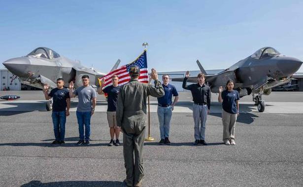 数名美空军人员正在进行入伍宣誓 资料图 原报道配图