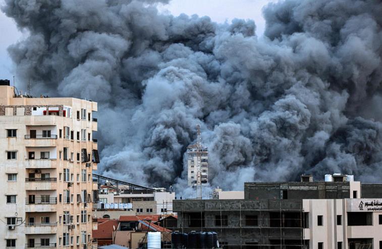10月7日,加沙城,以色列空袭期间,浓烟滚滚。