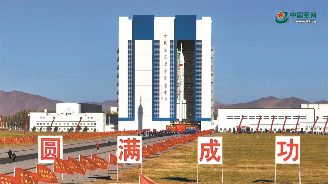 2023年10月19日,酒泉卫星发射中心载人航天发射场内,神舟十七号载人飞船与长征二号F遥十七运载火箭组合体转运至发射区。汪江波 摄