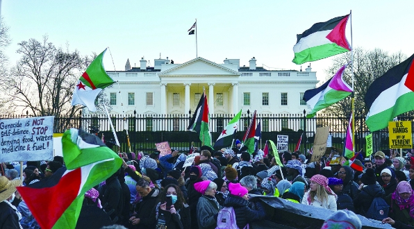 13日,美国华盛顿特区,数千名抗议者举行集会,呼吁加沙地带立即停火。(IC photo)