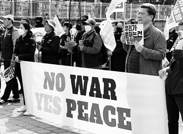 韩国民众反对韩美联合军演。