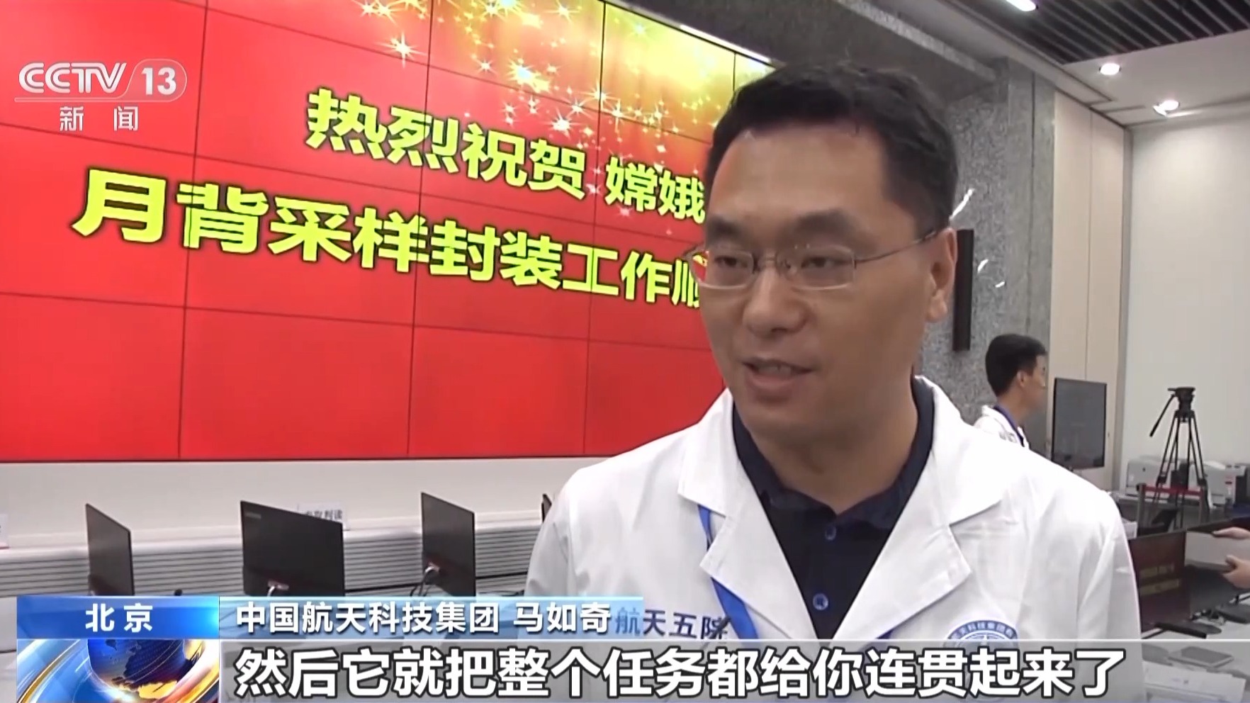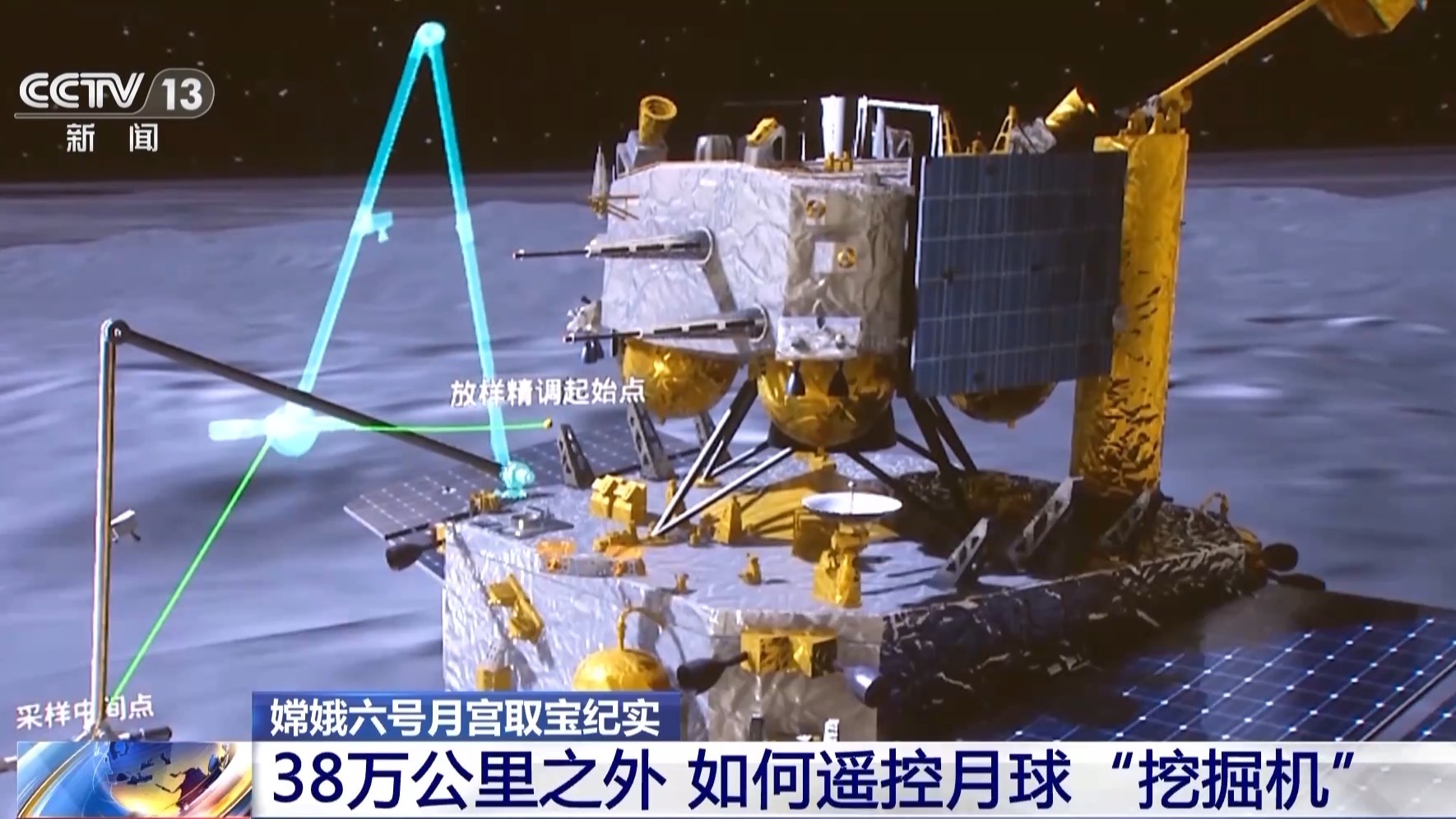 中国航天科技集团 马如奇:采样任务从一开始的时候,只要是你发一条指令,然后它就把整个任务都给连贯起来了,然后比如说像我们的触月、采样,然后到放样,整个过程中只需要一条指令把它就全给连起来全部执行了。有很多中间状态的一些遥测参数都不需要人工去判读,智能化的软件在后面就可以判读了,这样的话就效率提高了。