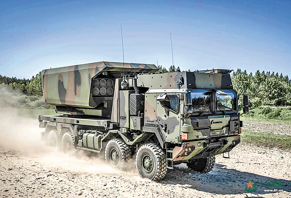 首先,更加重视战场机动能力。在第28届欧洲国际防务展上,德美相关公司联合研制的GMARS火箭炮,采用8×8卡车底盘。据称,该火箭炮速度可以达到100千米/小时。“快打快撤”能力,对火箭炮来说同样重要。俄乌冲突中,M142“海马斯”火箭炮可在几秒钟内射出6枚火箭弹,然后快速撤离阵地。