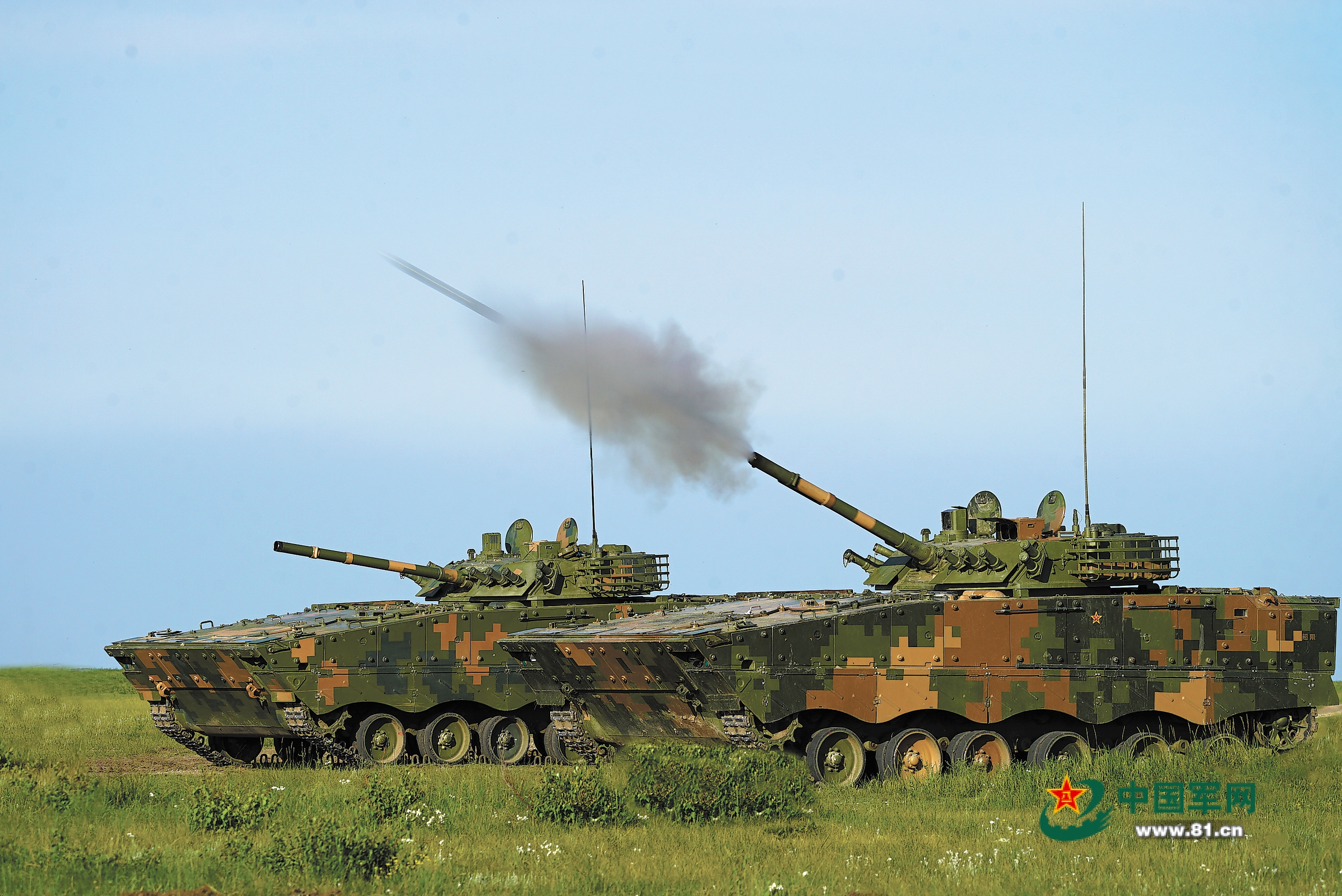 第82集团军某旅某装步连参加野外驻训。图为实弹射击。