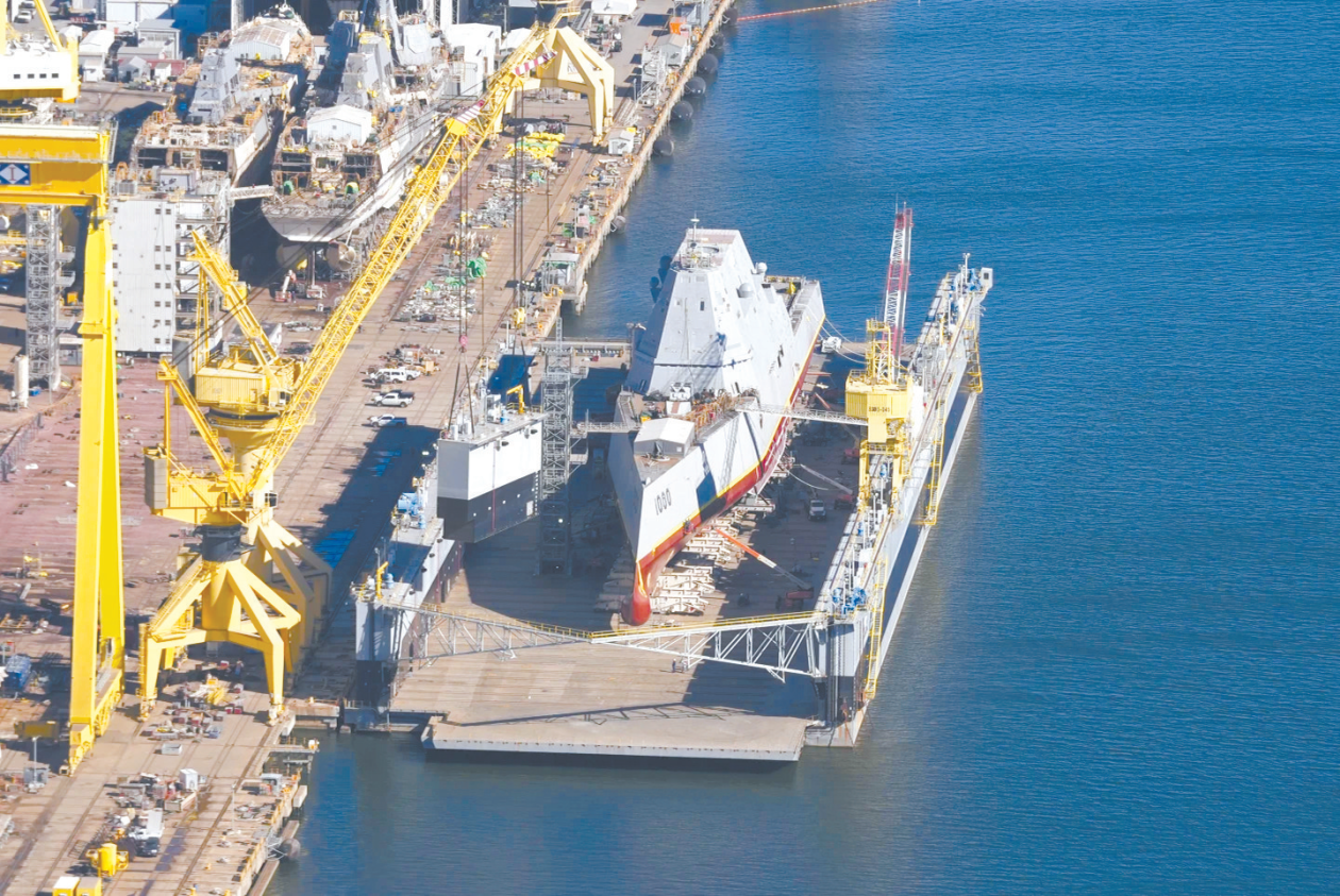 正在改装的“朱姆沃尔特”号导弹驱逐舰。(图源:美联社)