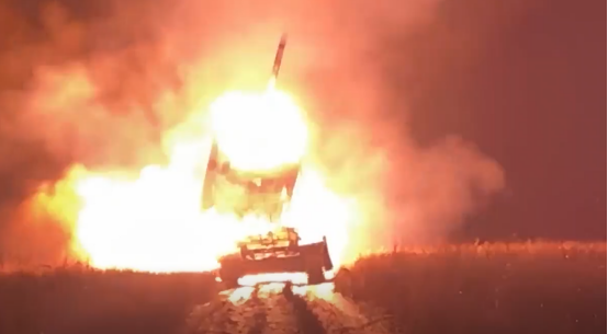 俄军TOS-1A“日炙”喷火坦克向乌军目标开火。 图源:塔斯社1月17日所发布视频截图