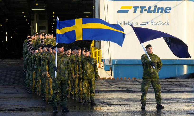 拉脱维亚国防部18日表示,瑞典的官兵和装备已乘船抵达里加港。瑞典是最近一个加入西方军事联盟北约的国家。