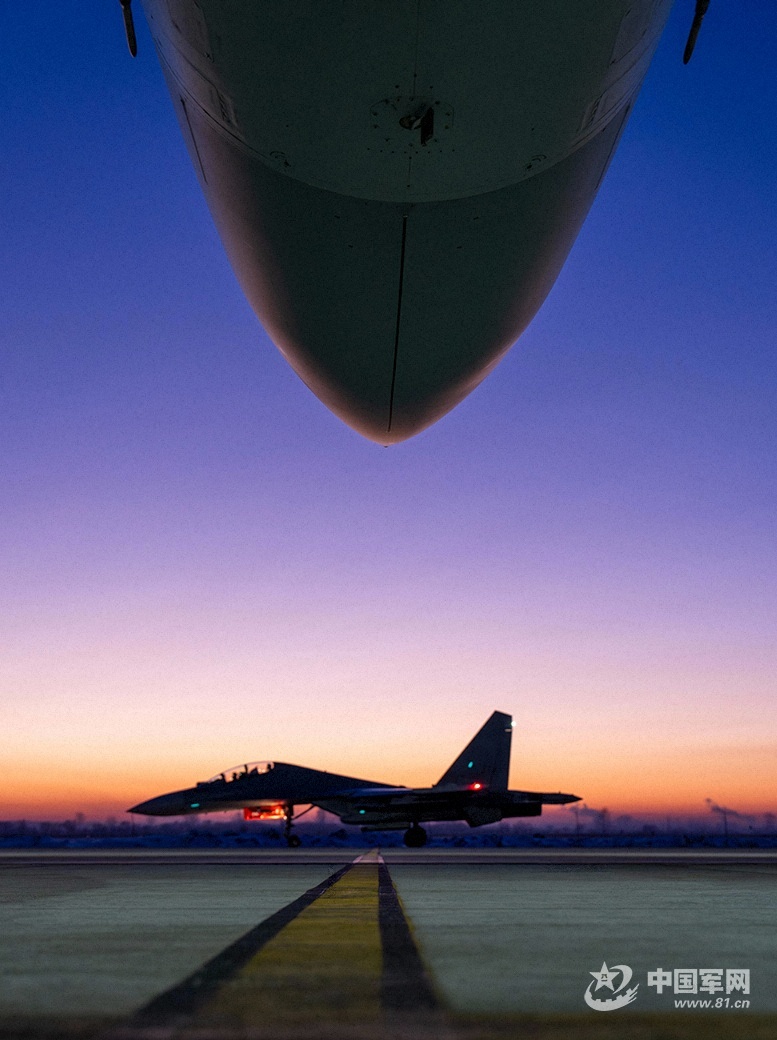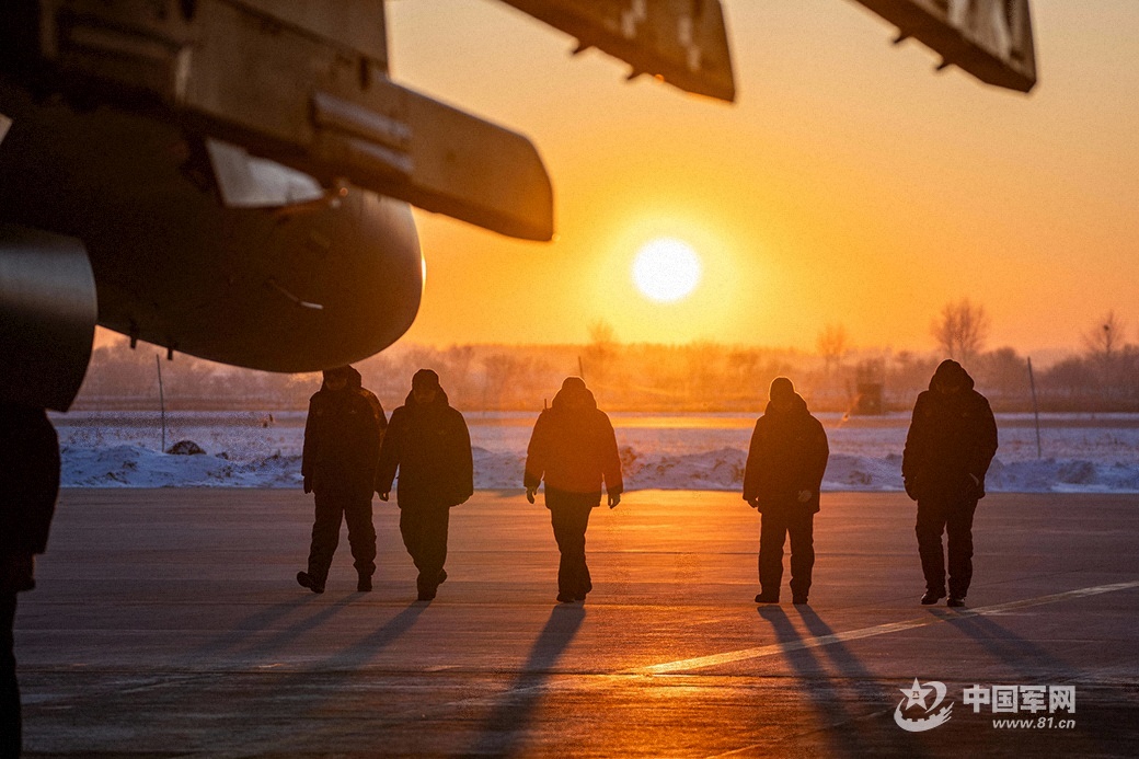 训练结束,战机陆续返航。当战机稳稳降落在跑道上,滑行至机棚,机务人员迅速上前,再次对战机进行细致的检查和维护,为飞机夜航训练做准备。尽管他们的脸庞已被寒风吹得通红,但工作热情却丝毫未减。