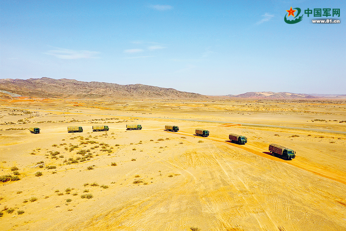 战备路上,迷彩战车碾过砂石,扬起阵阵尘烟,车辙覆盖前人留下的印记,又在风沙中不断延伸出新的轨迹。