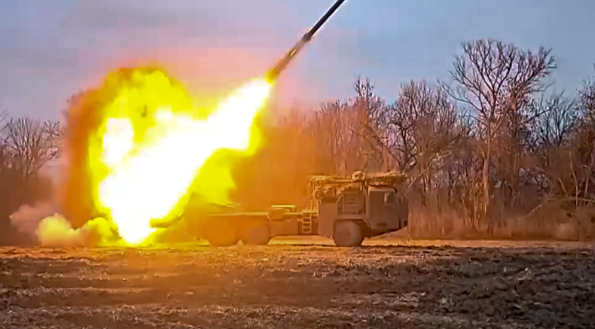 俄军在库尔斯克前线向乌军阵地发射火箭弹(美联社资料图片)