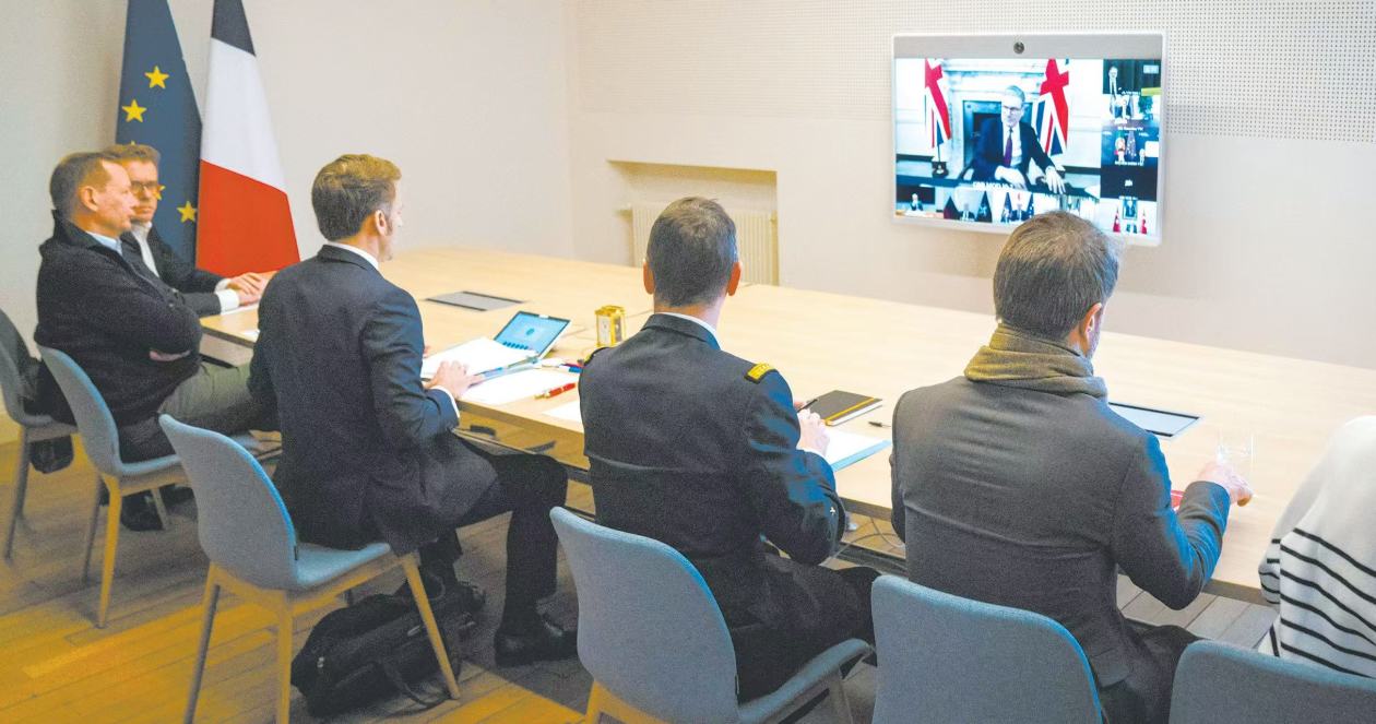 当地时间15日,法国总统马克龙在巴黎与英国、乌克兰以及欧盟委员会、北约等20多个国家和地区组织的领导人召开视频会议。(IC photo)