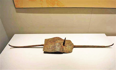 伴随着古代人类征伐、战争频发,钩逐渐被运用于军事领域,兵器钩出现。战国时期,城防战时已大量使用钩,用以钩取攀城和地道进犯之敌。钩是一种刃部弯曲、以钩、锁、割、挑、刺为核心的格斗兵器,一般由钩首、钩身和钩把构成。由于钩单独使用时战斗力较小,在战场上一般作为辅助性兵器,与戈、戟、矛等主战兵器配合使用。《墨子·鲁问》中提到:“公输子自鲁南游楚,焉始为舟战之器,作为钩强之备,退者钩之,进者强之。量其钩强之长,而制为之兵……”这里的“钩强”就是兵器“钩”和“拒”,是鲁班为楚国制造的水战武器,能在敌船后退时用钩拉住,前进时用拒推开,水军通过控制敌方船只距离,进而配合其他兵器杀伤敌军。