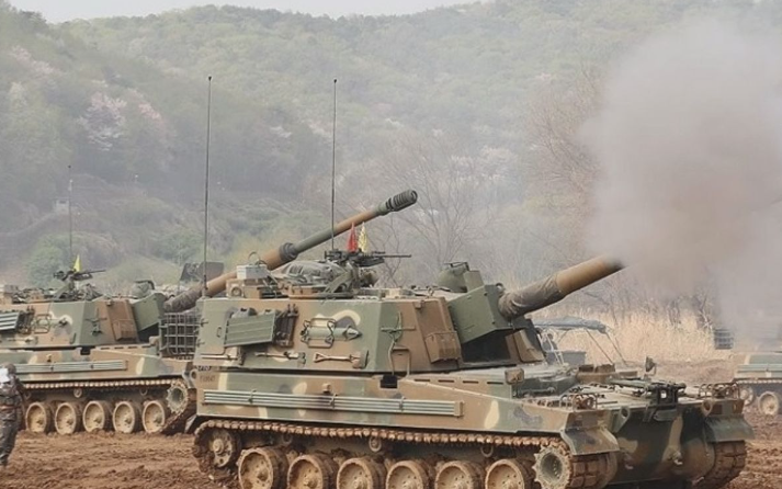 报道称,演习在21日举行,地点在坡州临津江一带,部队动用了12门K9A1自行榴弹炮和6门K55A1自行榴弹炮,向靶场的目标发射了60发炮弹。