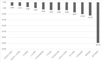 3月以来全球主要股指市场表现