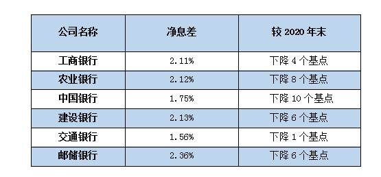 与此同时,各家大行资产质量整体稳中向好,不良贷款率均较2020年年末有所下降,风险抵御能力增强,且均低于银保监会披露的同期商业银行1.73%的均值。邮储银行不良贷款率最低,仅为0.82%;其余五家大行不良贷款率约为1.4%的水平。