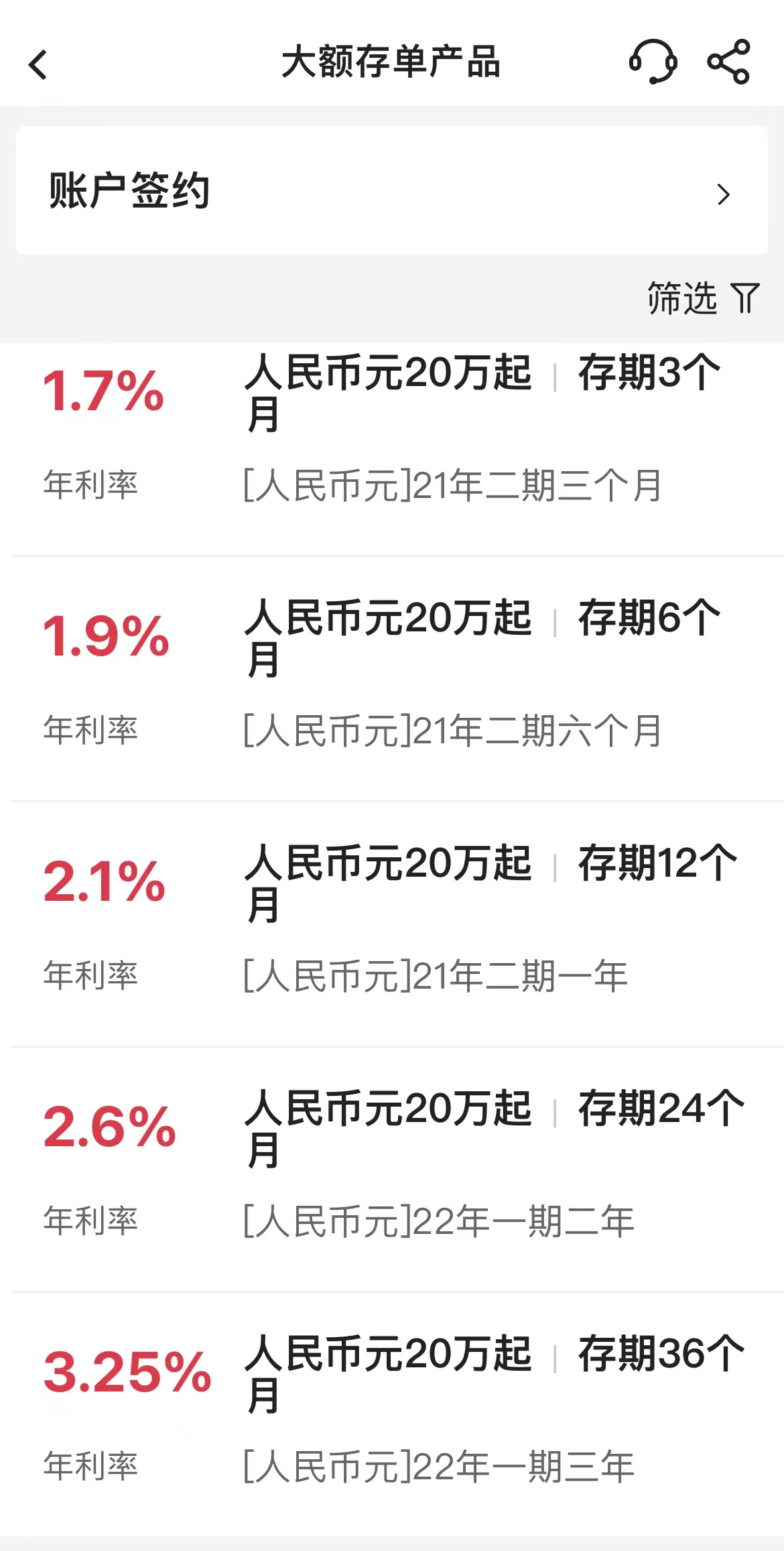 中国银行App显示,目前,1年期、2年期和3年期大额存单利率分别为2.1%、2.6%和3.25%,2年期和3年期大额存单利率较之前均下行,此前2年期和3年期大额存单利率分别为2.7%和3.35%。