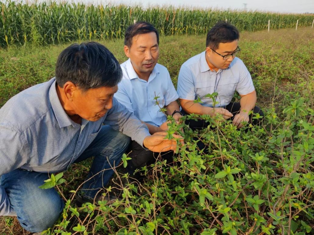 中国人寿财险山东省分公司相关专业技术人员冒着直射灼热的阳光,深入到平邑县金银花种植基地,研究如何进一步扩大保障范围,提供种植和价格双重保障服务