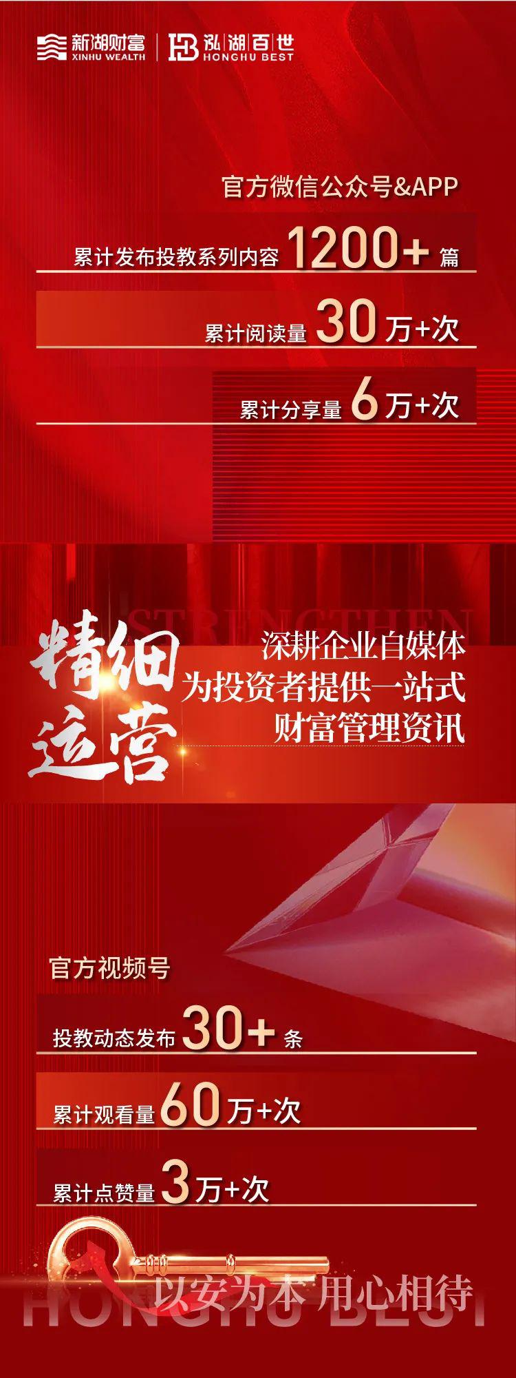 投资者教育是一项需要持续投入、不断创新的事业。新湖财富始终秉持“以客户为导向”的服务理念,倾听投资者心声,关切投资者权益,深耕投资者教育领域,传播有料且有趣的财经知识,为构建规范、透明、开放、有活力、有韧性的财富管理市场添砖加瓦。