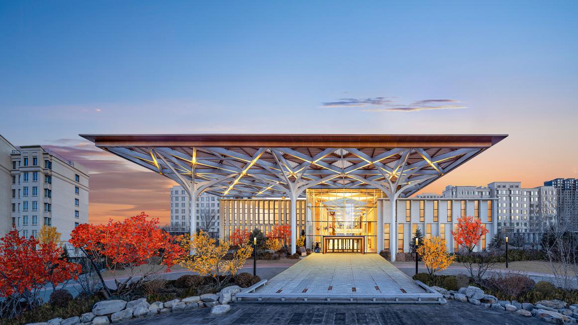 泰康之家·沈园位于沈阳市浑南区市政府行政商务区和沈阳自贸区交界区域的宜居地段,交通便利,配套设施丰富,地上建筑面积约16.2万平米,可提供约800个养老单元,配置二级康复医院和约110张医疗床位,提供独立生活、协助生活、专业护理、记忆照护等多种服务业态。社区整体以沈阳故宫为灵感布局景观轴线,同时以“森之聚落”为设计理念,用活力中心贯穿连接各栋建筑,让长辈们能够在社区内风雨无阻,自由穿行。