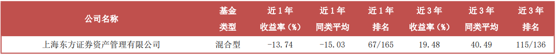 上海东方证券资产管理有限公司混合型基金近3年业绩与排名