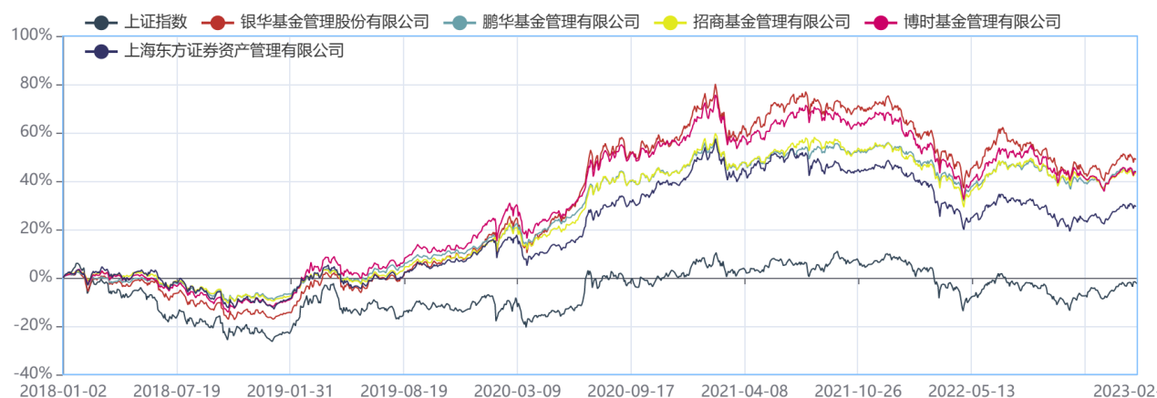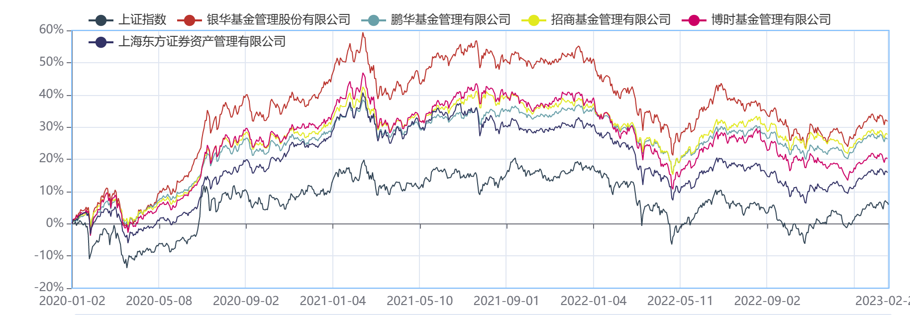 据济安金信基金评价中心统计数据显示,在过去的5年中(2020年1月2日至2023年2月23日),银华、鹏华5公司1000亿规模混合型基金拟合业绩均不同程度跑赢上证指数。同期上证指数下跌-1.82%,银华混合型基金拟合业绩为48.88%;鹏华混合型基金拟合业绩为43.79%;招商混合型基金拟合业绩为43.12%;东方资管混合型基金拟合业绩为29.44%;博时混合型基金拟合业绩43.78%。5家公司混合型基金拟合比较,银华基金混合型基金以48.88%的业绩排名第一,东方资管以29.44%业绩排名最后。