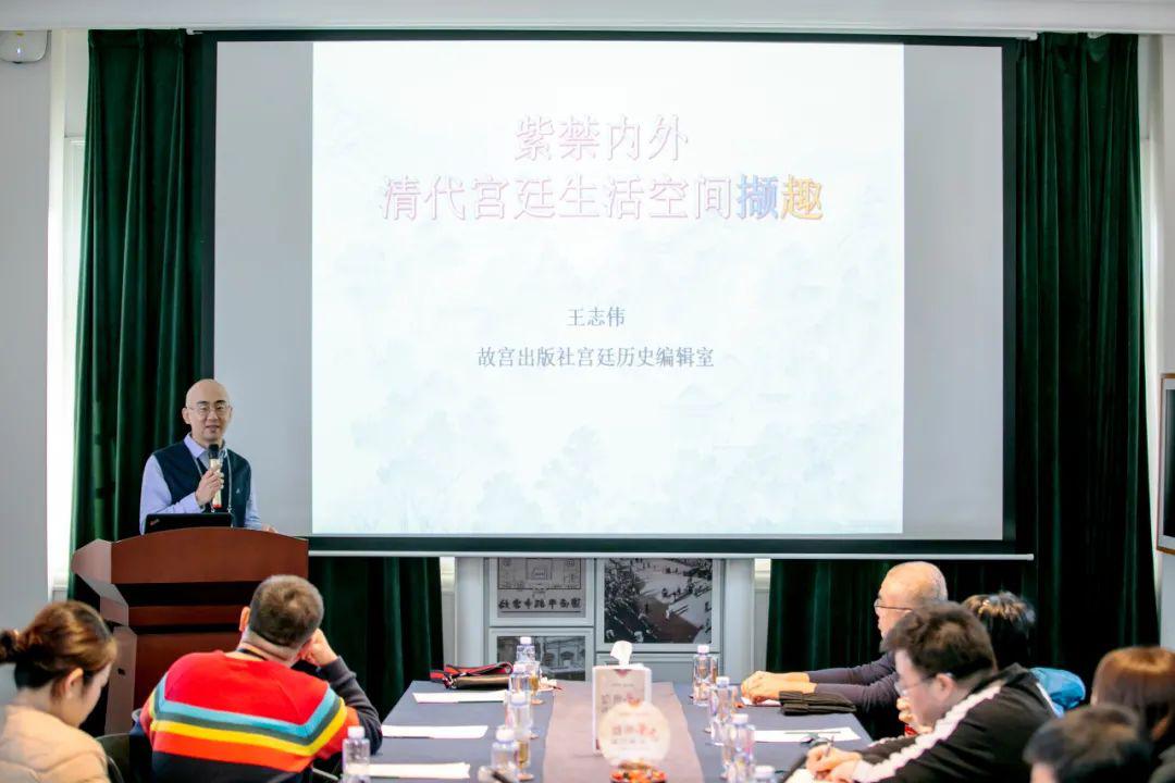 午后的第二课,是故宫出版社宫廷历史编辑室主任、中国文物学会文博出版传媒专业委员会副秘书长王志伟为学员们带来的“清代宫廷生活空间撷趣”。多年来,王志伟从事有关清代宫廷历史方面的研究、编辑与出版工作。同时,作为2018年风靡全网的宫廷史系列解密游戏书《谜宫》的作者兼编辑王志伟,他的这本书已经累计发行50万册。《谜宫2:金榜题名》也发行了20万册,这也让王志伟收获了一众故宫文化的铁粉儿。此外,王老师还著有《故宫藏影——西洋镜里的皇家建筑》《光影百年》等,由他所编辑的《故宫识珍》《浅谈博物馆陈列展览》等作品获选为“全国十佳文博图书”称号。