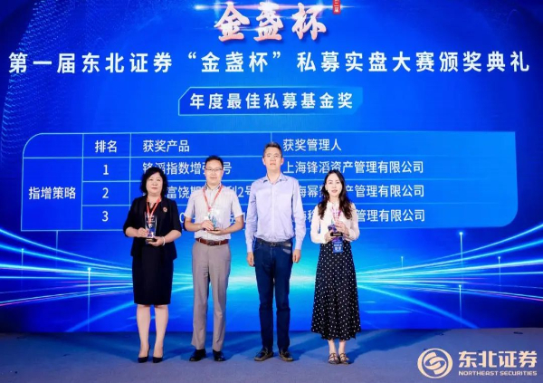 在本次大会上,东北证券第一届“金盏杯”私募实盘大赛年度最佳私募基金获奖名单揭晓。主办方领导也为上届大赛获年度奖的私募管理人举行了颁奖仪式。